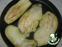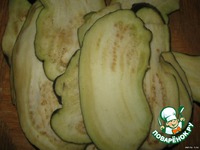 Баклажаны нарезаем тонкими пластинками (вдоль). Солим и смазываем растительным маслом. |