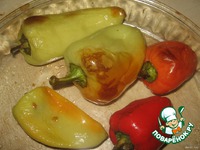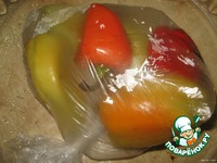 Потом снимаем с перцев кожицу. Если они хорошо пропеклись - она очень легко снимается. |
