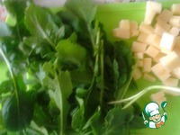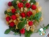 На блюдо выложить листочки рукколы, рис, нарезанный сыр, перемешать, сверху посыпать малиной, украсить листочками малины. Перед подачей посыпать смесью оливкового масла и бальзамического уксуса. |