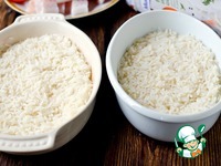 Отварной рис выложить в смазанную сливочным маслом форму для запекания. У меня две небольшие формы. |