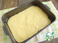 Для выпечки этого пирога я использую прямоугольную форму размером 23х30 см. Форму смазываю растительным маслом. Выливаю в форму половину теста, с помощью ложки распределяю тесто по всему дну. |
