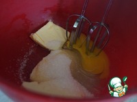 Займёмся тестом. Взбиваем яйцо с сахаром, ванилью, солью и мягким маслом. |