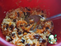 Взбить яйцо с половиной нормы сахара и перемешать с морковью и рисом. |