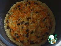 Выкладываем в форму тесто и формируем бортики. Выпекаем на режиме ВЫПЕЧКА 20 минут. В разогретой духовке выпекаем минут 10-15. |