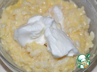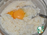 3. Затем к рису добавить сахар и желтки. Перемешать. |