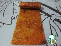 Противень застелить пекарной бумагой, выложить персиковое пюре. Распределить равномерным слоем на поверхности бумаги |