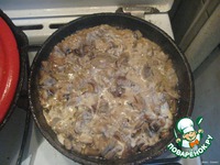Жарим грибы с луком, огда они уже готовы, добавляем сметану и оставляем на маленьком огне еще минут на 10. |