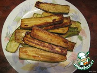 Кабачки нарезаем вдоль, солим и жарим в масле. |