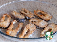 Стейки щуки посолить, запанировать в муке, излишки муки стряхнуть. |