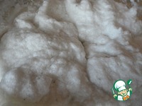 Противень застилаем фольгой, но фольгу пока не отрываем от рулона. Выкладываем половину нашего облака. |