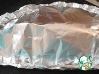 Обмазываем оставшейся белково-соляной смесью и накрываем фольгой. Теперь фольгу можно оборвать. |