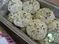 Сверху уложить вторую половину шариков в шахматном порядке. Накрыть полотенцем и оставить на расстойку, примерно на 15-20 минут. |