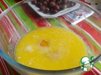 Сначала замесим тесто. Для этого в растопленное масло добавим яйца и сахар. Размешаем. |