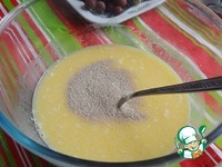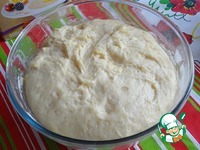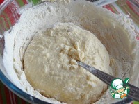 Далее добавляем половину муки и тщательно вымешиваем. Вливаем ложку растительного масла. Еще раз перемешиваем. Рецепт теста я вычитала в журнале "Всё для женщины". |