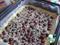 Посыпаем хлопьями и сахаром поверхность пирога. Можно поменять шаги местами и сначала насыпать хлопья, затем крыжовник, потом сахар. |