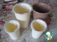 Одноразовые стаканчики смазываем растопленным шоколадом, даем застыть в холодильнике. |