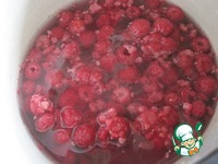 Для мусса воду соединяем с сахаром и оставшейся малиной, доводим до кипения и варим пару минут, процеживаем. |