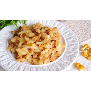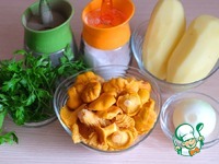 Ингредиенты для приготовления лисичек с луком и картошкой |