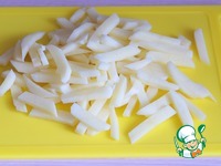 Пока грибы тушатся, картофель почистить, нашинковать соломкой. |