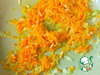 Пока фрикадельки варятся готовим пассеровку. Оставшуюся луковицу и морковь очищаем, лук режем мелким кубиком, морковь трем на терке. Обжариваем на сливочном масле. |
