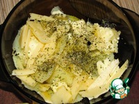 К вынутой части добавить сливочное масло, мелко порезанный сыр, соль, сушеный чеснок и травы. Сделать пюре. |