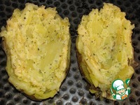 Аккуратно "вмять" получившуюся массу обратно в картофель, оставляя выемку для яичницы и делая бортики, чтобы яйца не вытекли. |