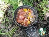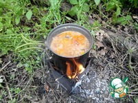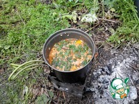 Так как мы добавили помидор и болгарский перец, у нас получился некий суп. Так как овощи дали значительную часть сока. |