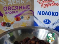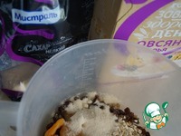 Выкладываем в блендер, добавляем сахар или мёд и овсяные хлопья. |