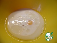 Во второй емкость смешать все жидкие компоненты (пахту, апельсиновый сок, яйцо и растительное масло). |