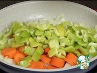 Режу лук, морковь, перец. Наливаю на сковороду растительное масло. Сначала поджариваю лук. Затем добавляю морковь и перец. И жарю практически до готовности. Жарю на сильном огне, постоянно помешивая. |
