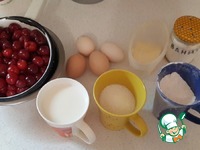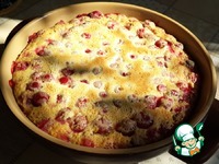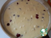 Заливаю вишню полученной смесью (тестом) и ставлю в заранее разогретую духовку до 180 градусов и выпекаю 50 минут (середина пропекается дольше), ориентируйтесь по своей духовке. |