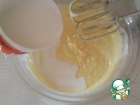 В полученную смесь вливаю молоко и взбиваю до получения однородной массы. |