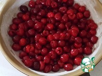 Смазываю форму маслом (из холодильника), посыпаю манной крупой и выкладываю свежую вишню (без косточек). |
