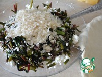 Выкладываем нашу начинку, сверху натираем сыр. |