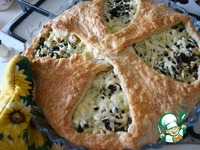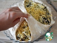 И стягиваем наши хвостики к центру - если не натягиваются до центра, оставьте так - тоже красиво. А дальше в духовку его! На 30-35 минут при 180 градусах. |