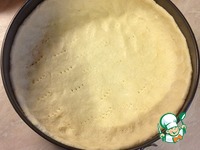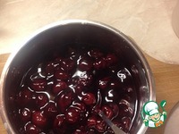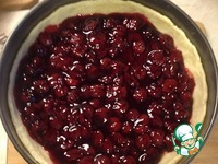 Достаем форму из духовки. Если бортики все-таки низко опустились, аккуратно делаем их ложкой чуть выше. Тесто еще не сильно запеклось и достаточно мягкое. Выкладываем вишню. |