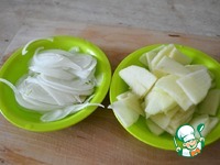 Перед тем, как замешивать тесто я разобралась с начинками - почистила и нарезала ломтиками яблоко и нашинковала максимально тонко лук. Можно с начинкой мудрить и мудрить! |