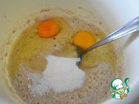 Вот такая пузырчатая и ароматная опара у нас получается. Овсяные хлопья набухли, но текстуру сохранили... |