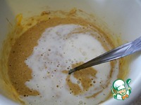 И потихоньку подсыпаем муку, просеянную с содой. Не забываем размешивать, чтобы избежать комочков. |