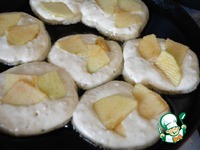 А на этой сковороде то же самое, только сверху на тесто кладем несколько ломтиков яблока. |