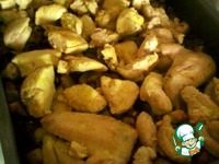 Грибы так же обжариваем, небольшими порциями на сильном нагреве, чтобы воду не дали. Подсаливаем так же в конце жарки, как баклажаны. |