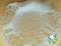 Начинаем готовить тесто сразу на 2 варианта выпечки. Смешать просеянную муку с сахаром мелким. |