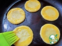 Переносим сплошные большие круги в смазанную форму. У меня тефлоновая. |