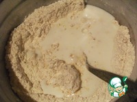 Добавляем соду и лимонку, перемешиваем смесь еще раз. Добавляем кефир. Замешиваем на кефире до густоты манной каши. Чем больше будет кефира, тем мягче будет хлеб и вязкость его будет выше. |