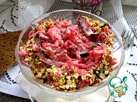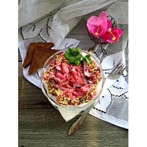 Описание: Вкусный и полезный салат. Овощи несомненно полезны, а свекла еще и кладезь витаминов. Овсяные хлопья придают легкую, приятную нотку в общем звучании вкусов.