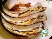 Каждую рыбу, тщательно обмазываем маринадом. Складываем в брюшко лимон |