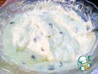 Приготовим начинку. Смешиваем творог, яйца, сахар и изюм |