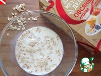 Цельно-зерновые овсяные хлопья залить горячим молоком и оставить до остывания молока. |