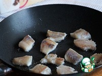 На сковороду с растительным маслом кладем нарезанное на филе кусочки рыбы. Рыба может быть любая (без костей) - у меня филе путассу. Посыпаем солью, перцем. |