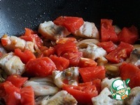 Помидор ошпариваем кипятком и снимаем шкуру, нарезаем на кубики и кладем к рыбе. Шкурку можно и не снимать, но мне больше нравится без нее. |
